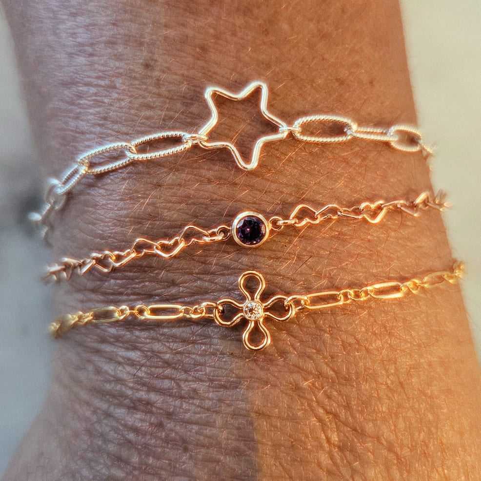 I fell in love with permanent jewelry when one of my clients came in wearing a sterling silver bracelet along with a sterling silver star. It was so cool! So clever! So…seamless! It was love at first sight!